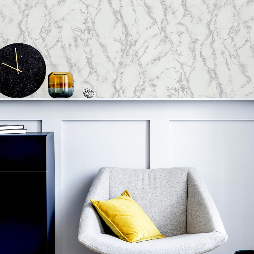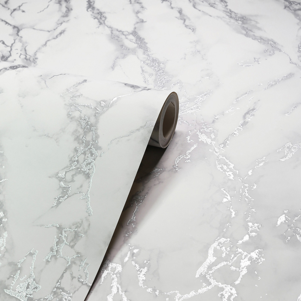 Elevate your space with the Carrara Marble Silver Wallpaper, a stylish choice for the modern home. This on-trend light grey wallpaper offers understated elegance and versatile appeal, complementing a wide range of colour schemes. Use it as a statement piece or pair it with a bolder pattern for a personalised touch. Perfect for living rooms, dining rooms, kitchens, hallways, or bedrooms, this sophisticated wallpaper transforms any room. Its offset pattern repeats every 64cm, and each 10.05m long roll is 53cm wide. A paste-the-paper application ensures easy installation.