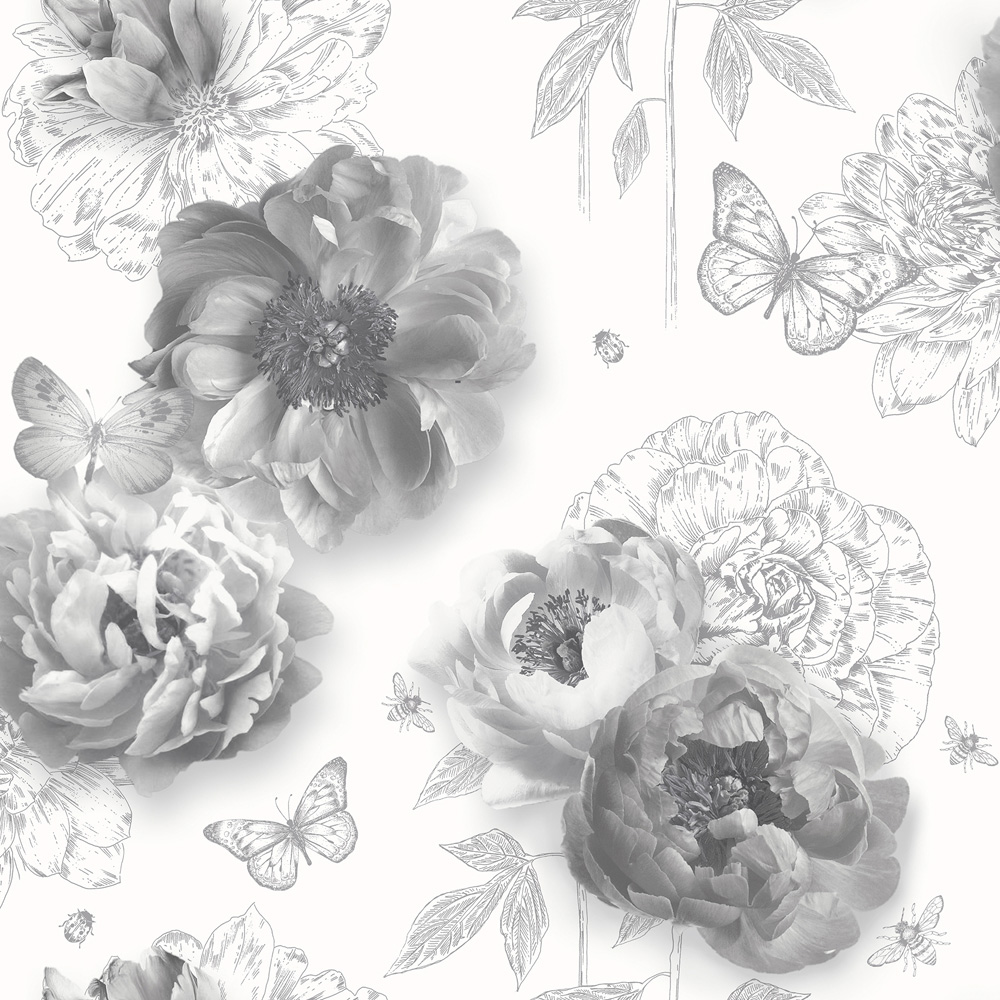 Add a touch of modern luxury to your home with this monochrome floral wallpaper. Its cool palette, featuring sketched floral illustrations on a textured background, offers contemporary elegance with an all-over glitter finish for a glamorous touch. Perfect for creating a stylish and sophisticated statement wall in any room, this versatile design is equally at home in a busy hallway, a living room, or an open-plan family area. Crafted from durable vinyl, it's not only beautiful but also practical, cleverly concealing minor wall imperfections for a flawless finish. A truly stunning choice for adding personality and style to your space.