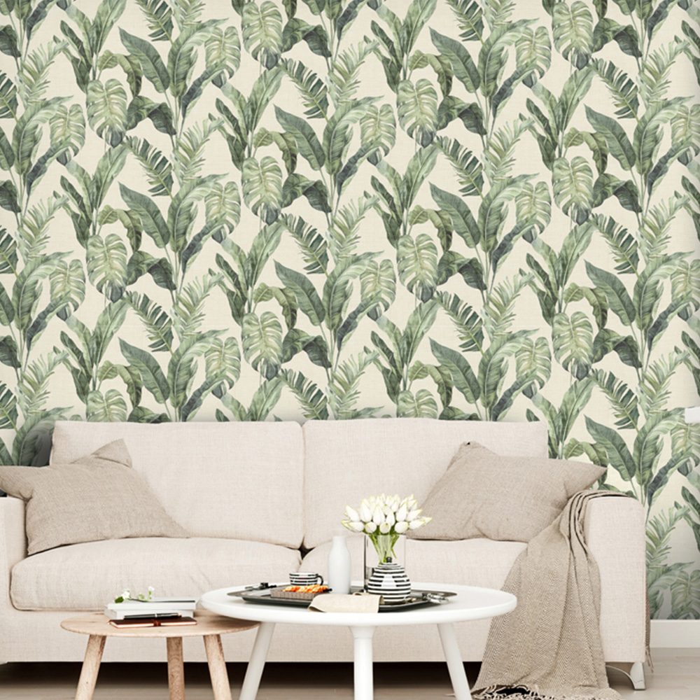 Introduce a touch of tranquil sophistication to your home with the Palm Springs Neutral Green Wallpaper from Arthouse. This wallpaper features large-scale palm fronds rendered in a soft green palette with calming neutral undertones, creating a serene and inviting atmosphere. The watercolour botanical style brings a sense of relaxed elegance to any room. Designed with durability in mind, this paste-the-paper wallpaper is extra washable and peelable, ensuring lasting beauty and easy maintenance.