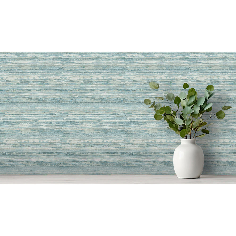 Experience the serene sophistication of Sahara, a premium heavyweight vinyl wallpaper. This luxurious soft blue wallpaper features a subtly intricate abstract design, mimicking the textures of stone or metal. Metallic and glitter effects add depth and shimmer, beautifully catching the light. Perfect for living rooms, bedrooms, or hallways, its durable heavyweight vinyl construction makes it ideal for high-traffic areas. Create a truly inviting space with Sahara's elegant and opulent design, ideal for use on all four walls.