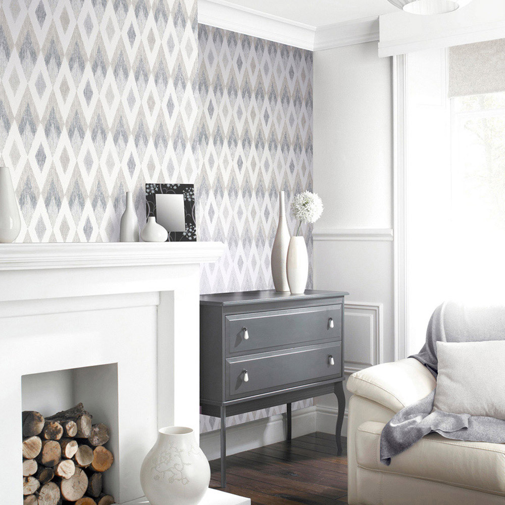 Add a cool, modern feel to your living space with this textured Scandi Diamond Wallpaper. The tribal-inspired diamond pattern shimmers subtly, catching the light beautifully. This geometric wallpaper’s airy design maximises the sense of space, creating a fresh, contemporary look perfect for living rooms, dining rooms, bedrooms, or home offices. Use it to accent a feature wall or paper an entire room. Paste-the-paper application makes hanging easy. The pattern has a 53cm straight match repeat. Each roll is 10.05m long and 53cm wide.