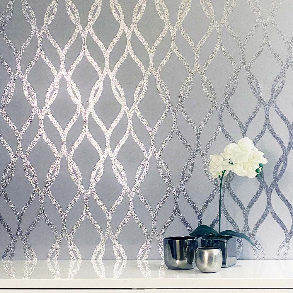 Arthouse Sequin Trellis Grey and Silver Wallpaper