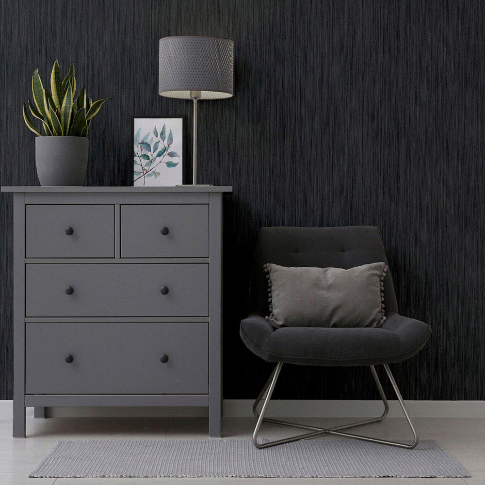 Add understated luxury to your home with this black stardust wallpaper. Its shimmering glitter finish and vertical texture create an opulent look without being overpowering. Perfect for a feature wall or all four, this durable vinyl wallpaper is also practical, hiding minor wall imperfections and standing up to the wear and tear of busy hallways, living rooms, and even bathrooms. Paste-the-paper application simplifies installation. The pattern is free match with a 53cm repeat, and each roll measures 10.05m long and 53cm wide.