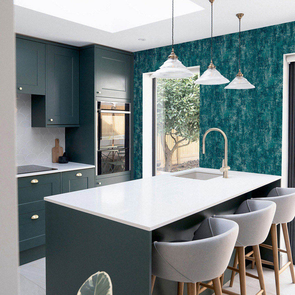 This Arthouse Stone Textures Emerald Wallpaper brings a touch of nature's luxury to your home. Its rough stone texture, accented with subtle metallic highlights, creates a rich, lived-in feel. The deep emerald green and gold tones add depth and sophistication, perfect for a moody living room or dining room. This washable wallpaper is easy to hang using the paste-the-paper method and features an on-trend mineral effect. Pattern match: offset 32cm, pattern repeat: 64cm, roll length: 10.05m, width: 53cm.
