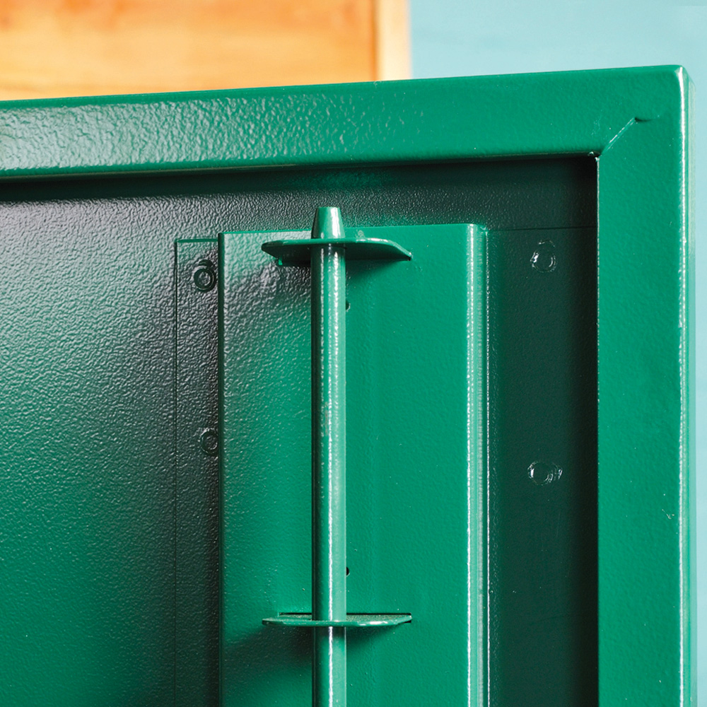 Keep your motorbike safe and sound with this Asgard Gladiator 7 x 9ft Motorcycle Shed. This shed is strong, secure, and made in Britain. It’s approved by the police, locksmiths, and insurance companies. The shed is built from thick, weatherproof steel. It has a five-point locking system with deadbolts. The locks are pick- and drill-resistant. The doors are reinforced and have a snap-off handle to stop theft. It also has strong stainless steel hinges and a solid metal floor. The wide double doors make it easy to get your bike in and out while the built-in vents help reduce dampness inside. You can also add power sockets—great for trickle chargers. The shed comes with a ramp, wooden floor, shelf, hook rail, and socket plates. The base size recommended is 2410mm x 3100mm - (Internal measurements are 1980mm (apex height) or 1820mm (eaves height) x 2600mm (depth) x 2140mm (width), all wrapped up in a sleek cream finish. Designed to sit on a solid concrete or tarmac base. Colour: Cream.