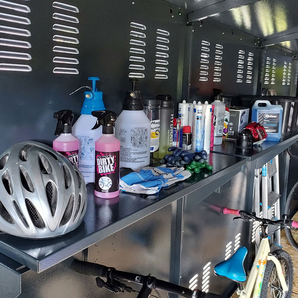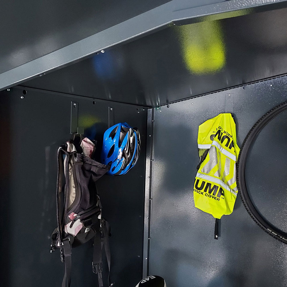 Store and keep your bikes safe with this Asgard Gladiator Double Door High Security Apex Bike Storage Shed. Offering space for 14 bikes, it is a 100% British-made, Secured by Design (Police Preferred Specification), Locksmith-Approved and Insurance-Approved multi-purpose shed, providing exceptionally secure storage for all of your bikes and equipment. It also features pick and drill-resistant locks with a theft-resistant, snap-off handle, and a five-point locking system including deadbolts, reinforced doors, stainless steel hinges, as well as heavy-duty steel panels. Featuring electric socket mounting plates for adding power, this fully approved shed offers superior, professional-level security and is the ideal (one-stop) secure store for all of your tools, bikes, and riding equipment. It is constructed from thick, weatherproof galvanised steel panels and features an integral metal floor and convenient large double door access. This fully ventilated bike storage shed has been designed to minimise condensation thanks to the integral ventilation system, helping to maintain internal airflow, while remaining secure. This shed comes complete with a ramp, wooden subfloor, shelves, hooks, four bike racks and electric socket mounting plates. Dimensions: 7 x 18ft. The base size recommended is 2410mm x 4940mm - (Internal Measurements are 1980mm apex / 1820mm eaves x D4314mm x W2140mm). Colour: Grey. Note: The shed must sit on concrete, tarmac or concrete. Hardcore, soil, grass or eco bases are not suitable.