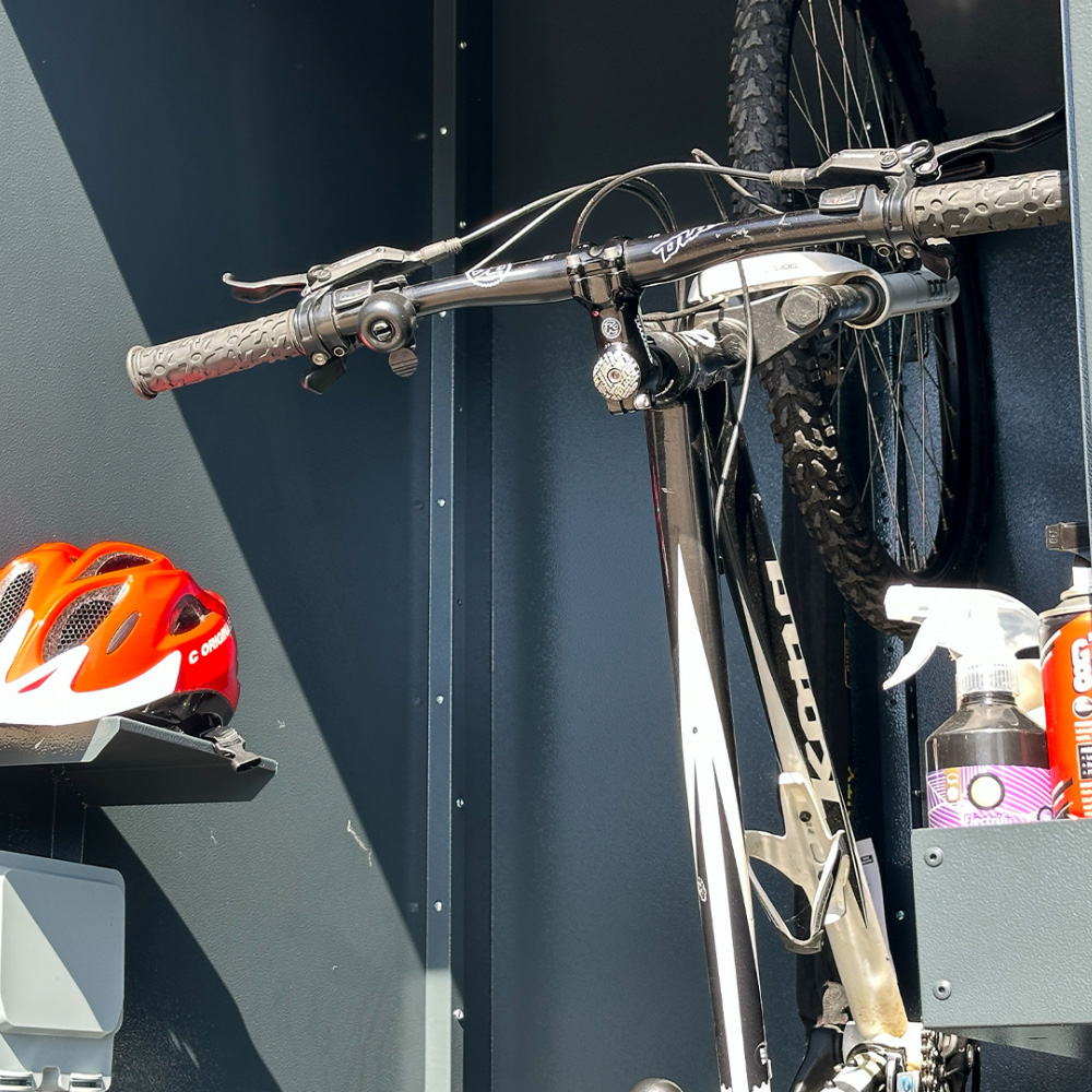 Take back your space with the Asgard Single Door Cream Vertical Bike Locker 2.6 x 3.6ft. This smart, space-saving bike locker stores your bike vertically, cutting down on floor space while keeping your gear safe, secure, and ready to go. Made from tough, all-steel panels, it is built to last. Just open the reinforced, fully galvanised door, lift your bike’s front wheel, and hook it onto the adjustable bike hanger inside. That’s it! Your bike is safely stored in seconds. Security-wise, it’s packed with features, including a strong three-point locking system with solid steel deadbolts, a pick-and-drill-resistant Euro-cylinder lock, and a snap-off theft-prevention handle to stop tampering. There’s even a steel shroud around the lock to help block brute-force attacks. There are two electrical mounting plates and grommeted access points as well for adding sockets if you need to charge your lights or gear. It also comes with handy extras like a hanging rail for wet jackets and hooks for helmets or bags. The full metal floor means it’s solid underfoot, and the whole unit can be bolted down to concrete, making it extremely hard to move, especially since it weighs around 20 stone. Use it outside on its own or pop it in your garage for an extra layer of security. Accessories shown in the picture are not included; they are just for illustration. You must place this shed on a solid surface like concrete or tarmac. It’s not suitable for grass, soil, hardcore, or eco bases. The base size recommended is 1250 x 100mm. Internal measurements: 2010mm (back height) / 1957mm (front height) x 1168mm (depth) x 948mm (width).