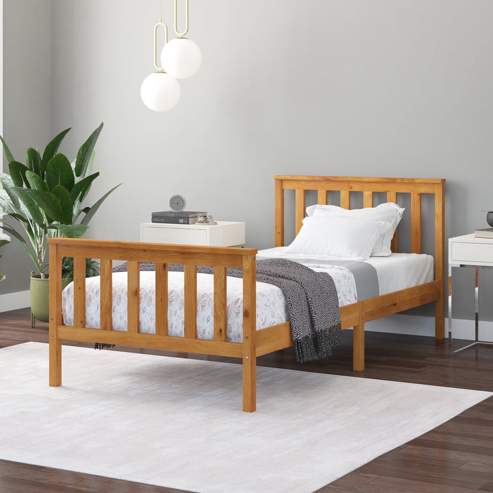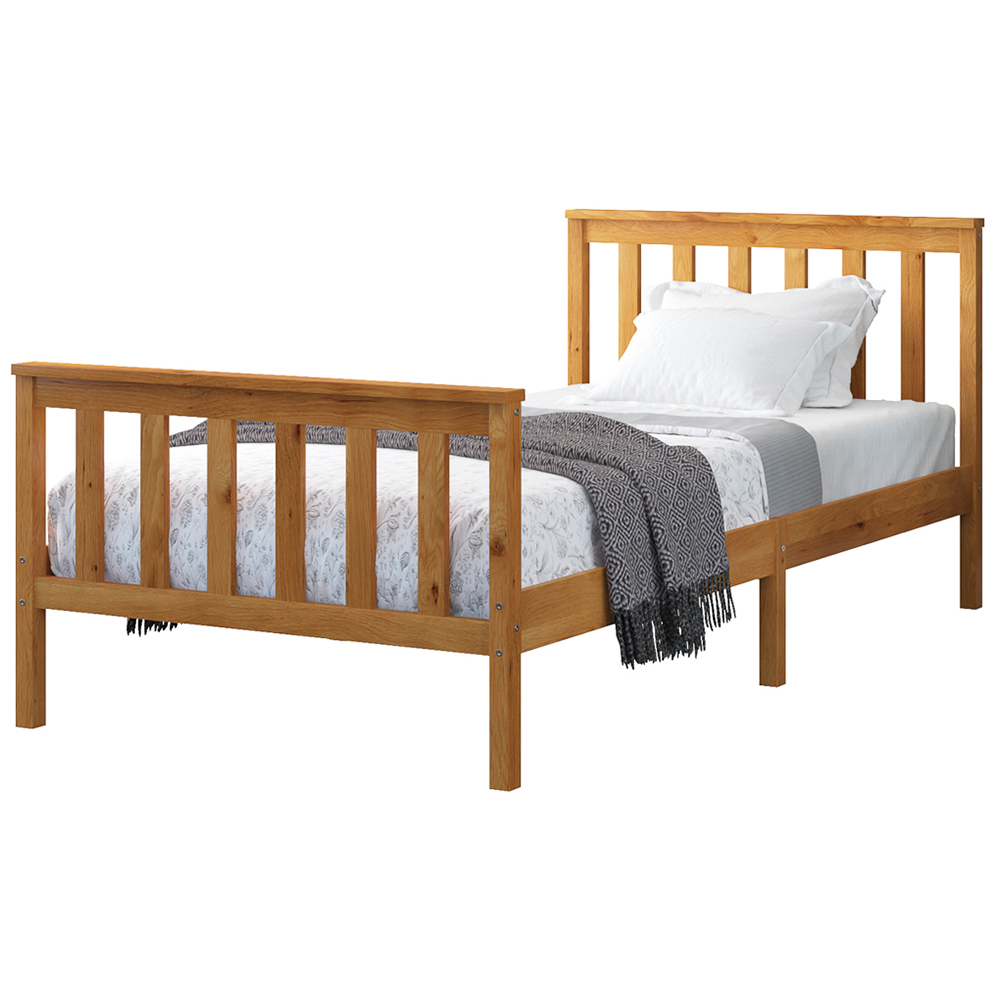 Upgrade your bedroom with this elegantly crafted Shaker-style wooden bed. Its clean lines and minimalist design suit any interior, from traditional to contemporary. Built to last, the robust solid slat system provides reliable support, meeting rigorous EN 1725 British Standards for strength and stability. Enjoy ample under-bed storage with a generous 20cm clearance, perfect for storing extra bedding or seasonal items. Compatible with all standard UK size mattresses, this bed offers fuss-free convenience. Simple, tool-free assembly makes setup a breeze – though two people will find it easier than one. Available in Single, Small Double, Double, King, and Super King sizes, this bed offers exceptional quality and value, combining timeless style with durable construction.
