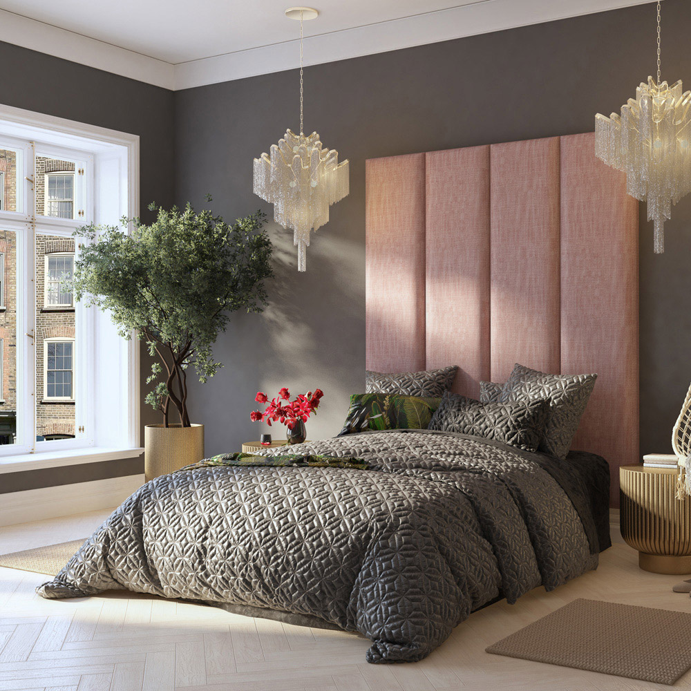 Aspire Furniture Llewelyn-Bowen Luxury Tea Rose Pure Pastel Cotton Wall Mounted Headboard 45cm