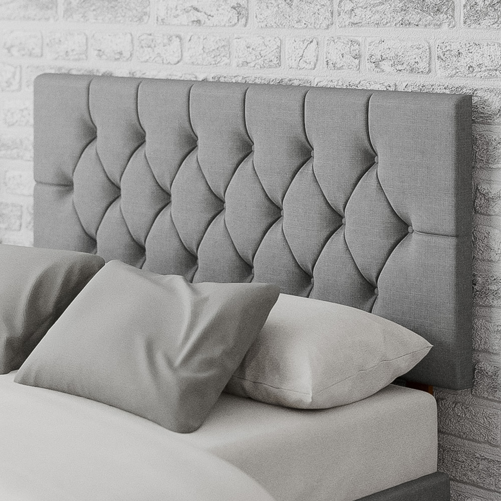 Create a timeless bedroom focal point with the Olivier single grey linen headboard. Upholstered in a luxurious linen-type fabric, this headboard boasts a hand-tufted design, complementing both modern and traditional styles. Its 15mm thick wooden panel, 35mm deep foam padding, and solid mahogany struts ensure lasting quality and comfortable support while you relax in bed. Suitable for all standard UK bed bases.