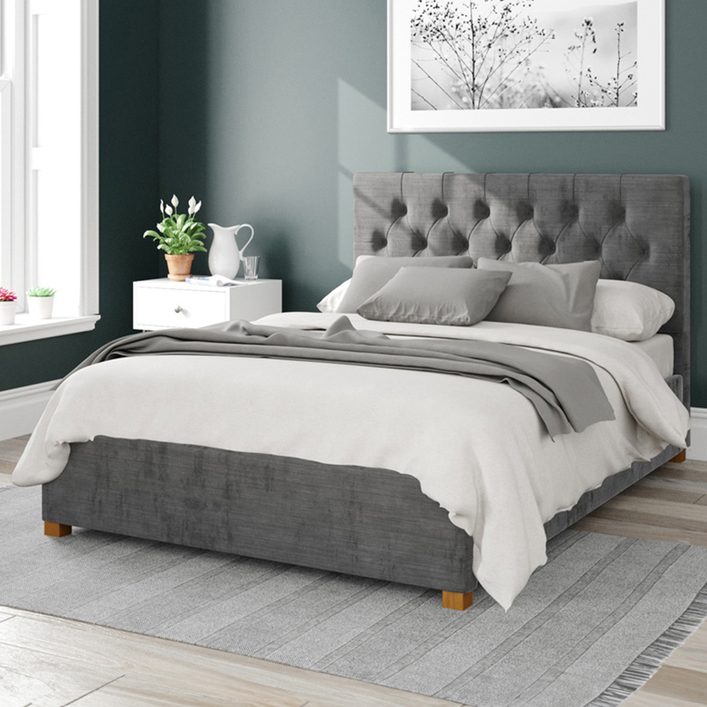 Aspire Olivier King Size Charcoal Firenze Velour Ottoman Bed