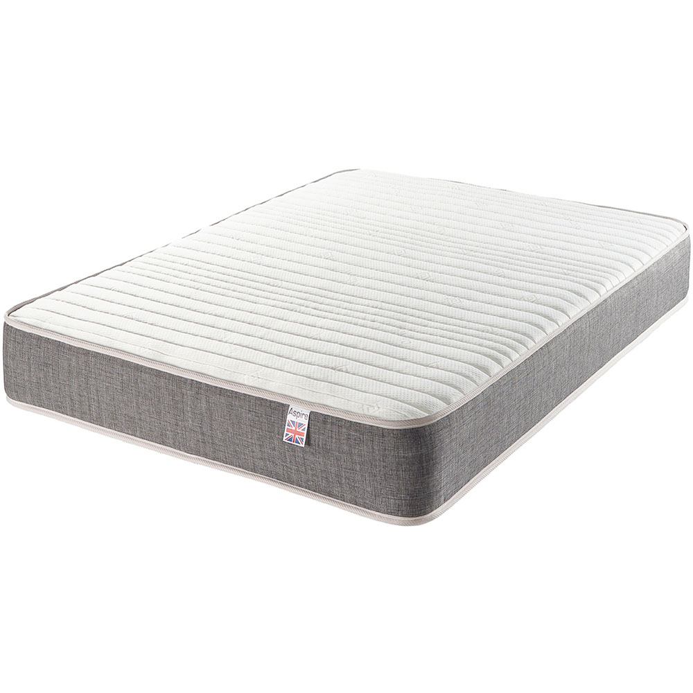 Experience luxurious comfort with the Aspire Pocket+ King Size mattress. This high-quality mattress, perfect for most sleepers, surpasses standard pocket spring models. Engineered for exceptional comfort after extensive testing of spring types, number, wire thickness, coil count, and bonding methods, it features a five-layer construction: a supportive eco-foam layer sits atop a unique insulator, providing superior structure and edge support, topped with a body-contouring memory foam layer for a truly plush feel. The breathable quilted cover with airflow fillings prevents overheating. Individually pocketed springs minimise motion transfer, while the enhanced base structure and softer upper layers offer instant comfort and all-night support, protecting your posture. This mattress retains its shape even after rolling, thanks to its robust construction and edge support. Crafted from 100% sustainable materials, it',s an eco-friendly and affordable choice. Delivered in a compact box for easy handling, it regains 90% of its depth within hours, reaching full expansion in approximately 48 hours. Made in the UK in an audited factory with excellent working conditions, and packaged sustainably.