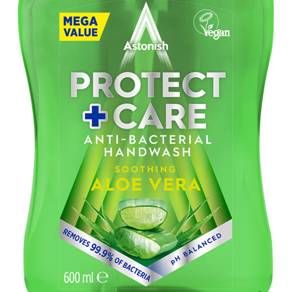 Experience the Astonish Aloe Vera Antibacterial Handwash—a refreshing way to keep your hands impeccably clean. This handwash effectively eliminates 99.9% of bacteria, dirt, and germs, leaving your hands hygienically clean and protected. Its invigorating scent is complemented by added moisturizer, ensuring soft, nourished skin. Dermatologically tested, vegan, and cruelty-free, it',s the perfect choice for the whole family. 600ml bottle.