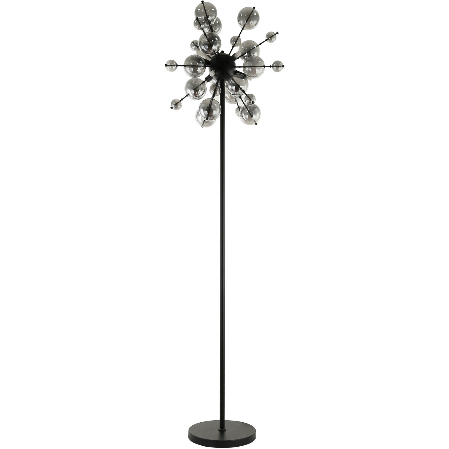 Elevate your living space with the Aurora floor lamp, a captivating statement piece for the bedroom or living room. Its striking black finish, complemented by a round base and a slender pole adorned with graduated smoked glass spheres, creates a truly mesmerising ambience. This eye-catching design adds both style and a warm, inviting glow to any room.