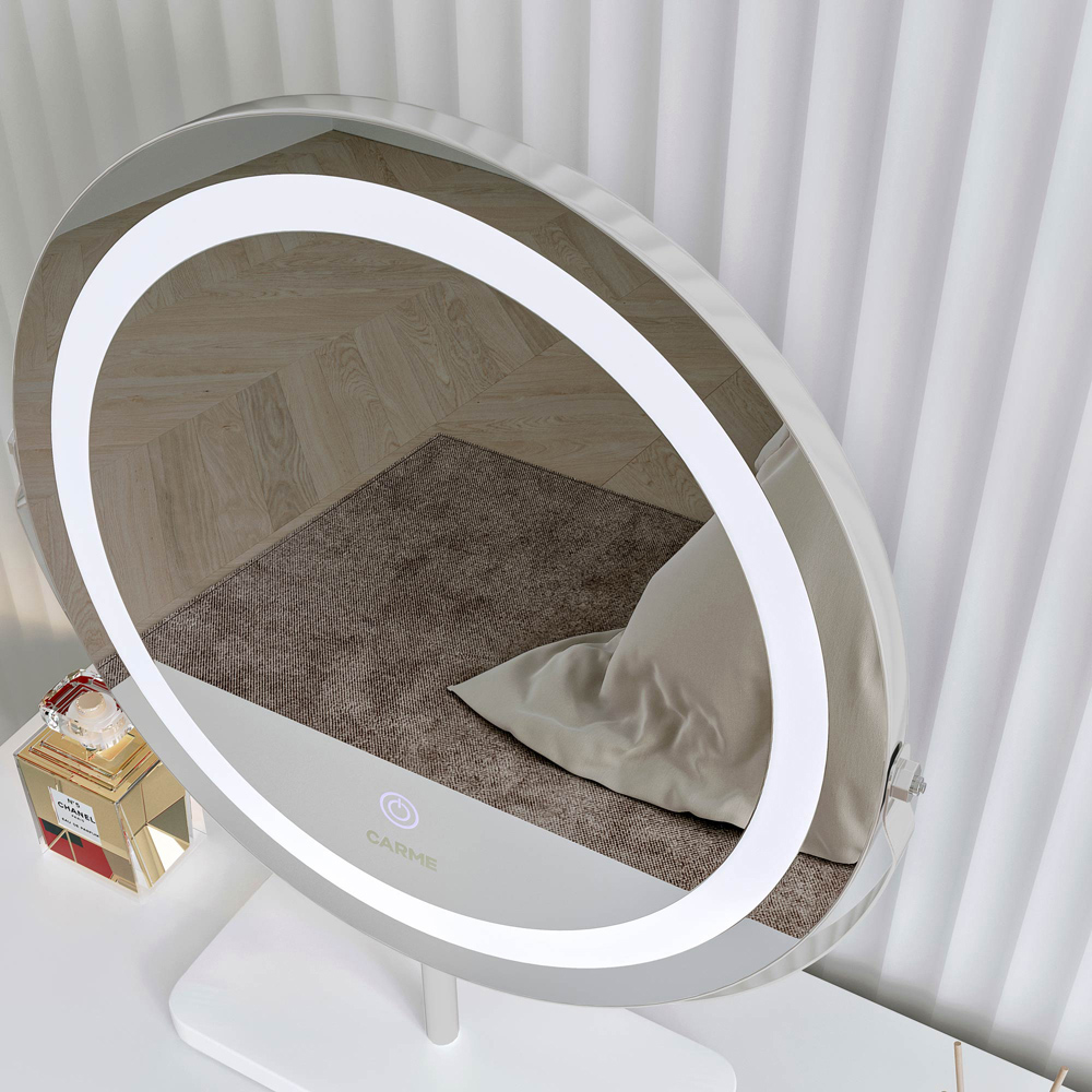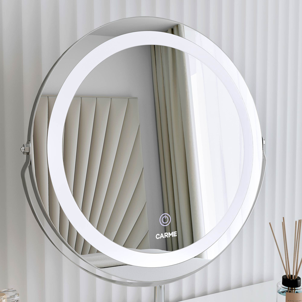 CARME Home Ava Silver Marble Touch Sensor LED Light Mirror