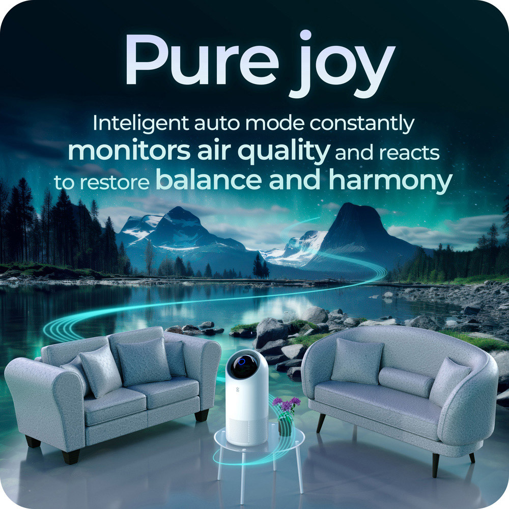 Experience cleaner, fresher air with the Avalla R-2200 Air Purifier. This energy-efficient (45W) purifier tackles allergens, toxins, dust, pollen, smoke, VOCs, gases, pet dander, and particles down to 0.3 microns—capturing 99.97% with its three-stage true HEPA filter. Its near-silent brushless motor ensures quiet operation, while a 250m³/h CADR and adjustable dome allow for effective air purification in larger rooms. A responsive ring light provides visual air quality feedback. Directional airflow lets you target specific areas for immediate and lasting results. High-density activated carbon effectively eliminates unwanted odours, leaving your space refreshed and revitalized.
