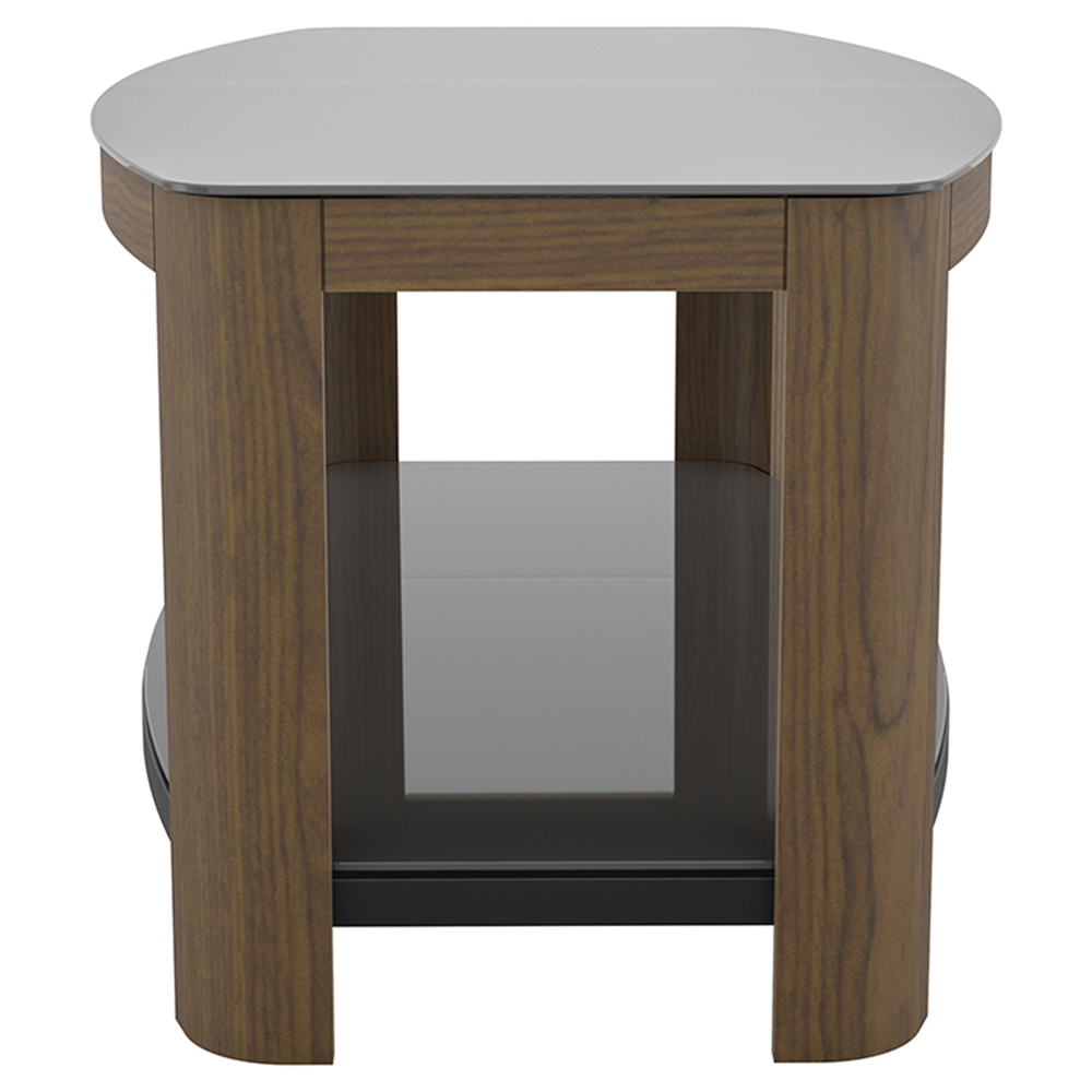 Add a touch of sophisticated style to your living space with the Affinity Walnut Coffee Table. This 100cm wide beauty boasts a simple yet elegant design, perfect for complementing a variety of interior styles. Crafted from curved real wood veneer and topped with tempered black safety glass, it',s a statement piece that',s both practical and visually stunning. The perfect blend of form and function, this coffee table will effortlessly elevate your home',s aesthetic.