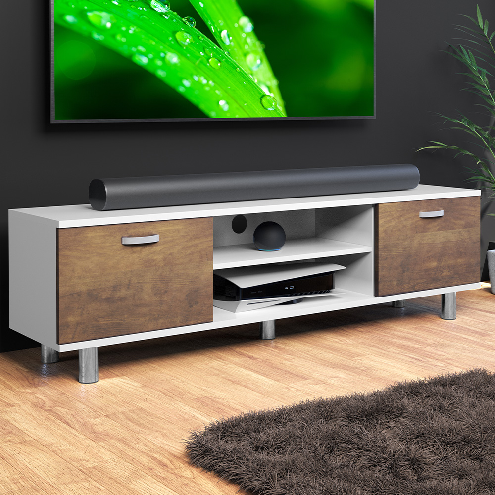 AVF Omaha 2 Door 2 Shelf Walnut and White TV Unit