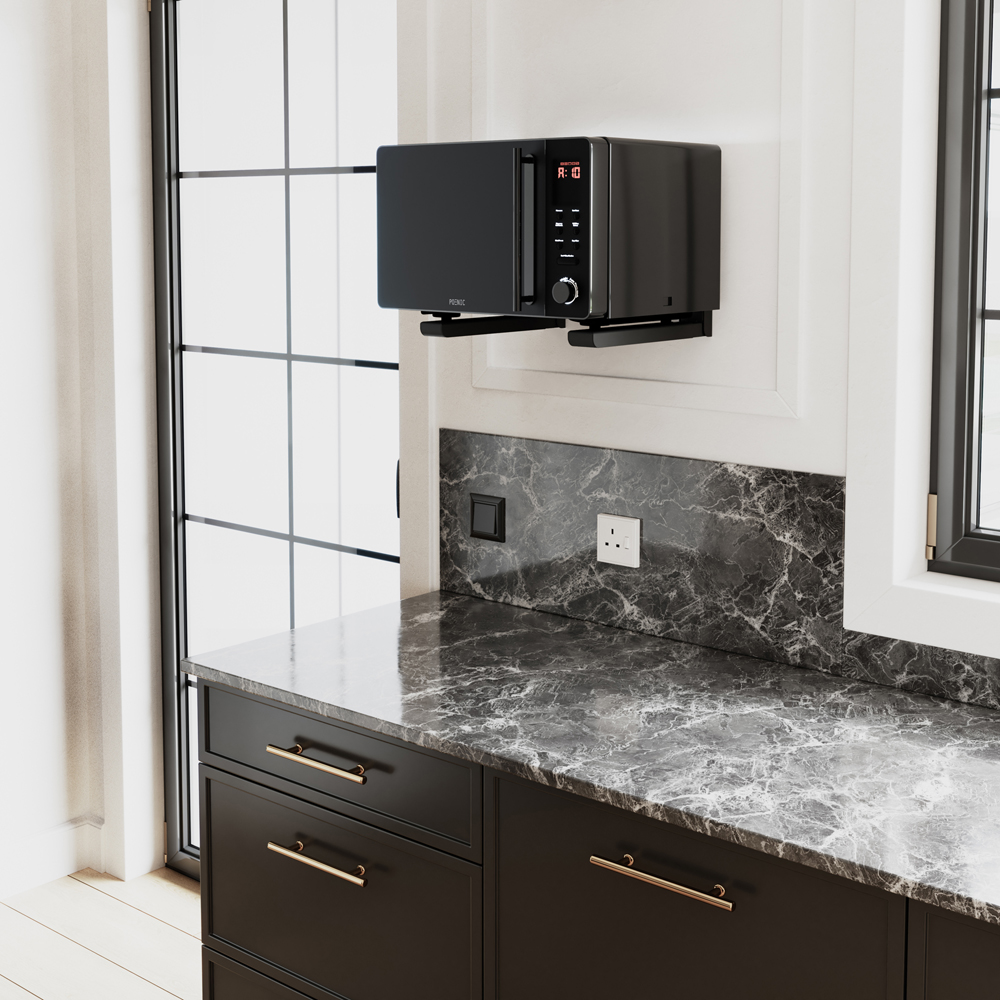 Reclaim valuable kitchen counter space with the AVF Universal Microwave Wall Bracket. Its adaptable design, featuring extendable arms reaching up to 45cm (17.7 inches), ensures a secure fit for microwaves of virtually any size and shape. Simple to install, this bracket provides a neat and efficient solution for wall-mounting your microwave, freeing up valuable workspace.
