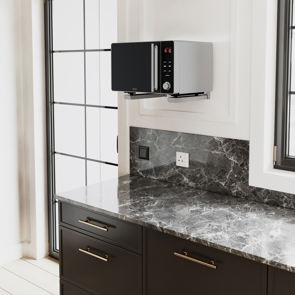 Reclaim valuable kitchen counter space with the AVF Universal Microwave Wall Bracket. Its adaptable design and extendable arms, reaching up to 45cm (17.7 inches), provide a secure and convenient mounting solution for microwaves of all shapes and sizes. Simply attach the bracket to your wall and enjoy the extra space. A timeless and functional addition to any kitchen.