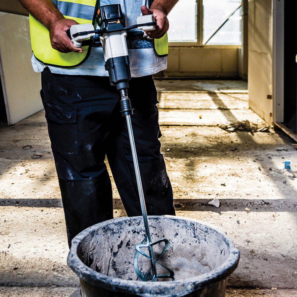 Unleash professional mixing power without the cord hassle with the Batavia Maxxpack Universal Mixer 18V. Its innovative brushless motor delivers exceptional performance and extended lifespan, perfect for tough jobs. Enjoy cordless freedom and precise control with two mechanical speeds and variable speed control for perfect mixing consistency. The electronic soft starter ensures a splatter-free experience. Tackle a wide range of materials with ease. Mixing Paddle (W x L): 120 x 590mm. No Load Speed: 0-420/0-710/min. Sound pressure level LpA: 77.8 dB(A). Weight: 4.2kg.
