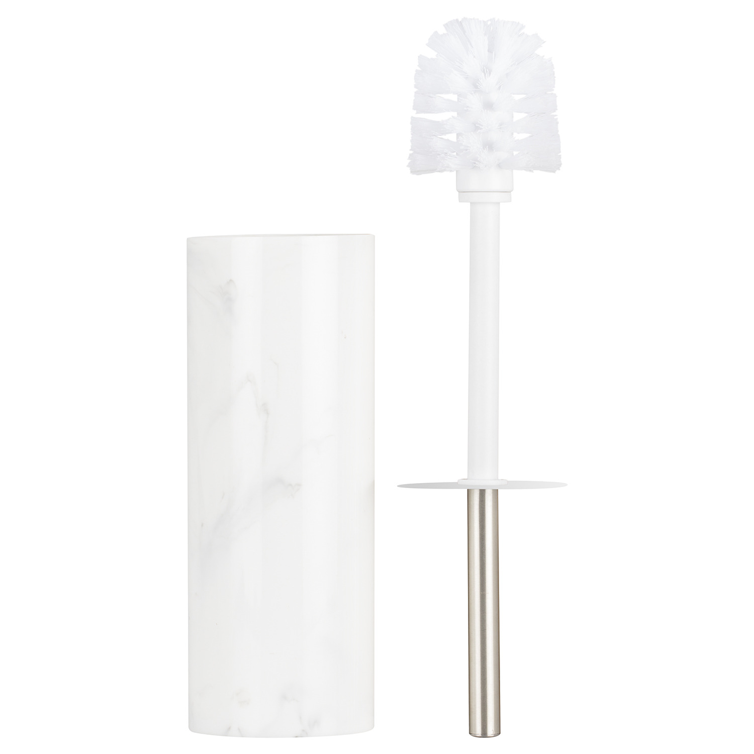 Elevate your bathroom's aesthetic with this Attica Marble Effect Toilet Brush Holder. Its luxurious marble-effect design, crafted from durable polyresin with a sleek stainless steel handle, makes a sophisticated statement. Keep your toilet sparkling clean while adding a touch of elegance to your space. A stylish and practical addition to any bathroom.