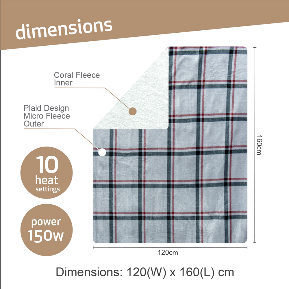 Bauer Luxury Plaid Soft Touch Heated Throw 120 x 160cm