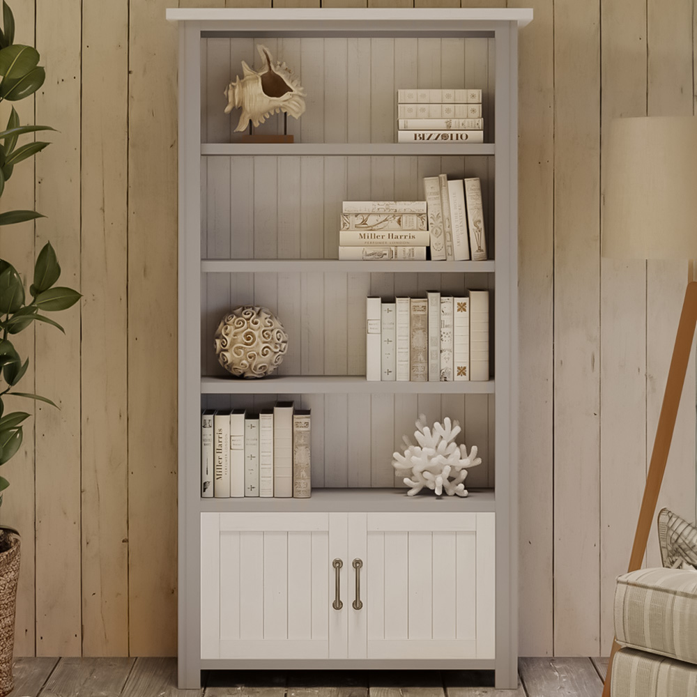 This Greystone bookcase from Baumhaus is a stylish and practical addition to any home study. Its four spacious shelves and double cupboard offer ample storage for books, photos, and decorative items. Made from reclaimed weathered wood, each bookcase boasts a unique character, showcasing the natural grain, knots, and subtle colour variations of the timber. A contemporary paint finish and protective clear lacquer enhance the rustic charm and durability of this beautifully handcrafted piece. The bookcase arrives fully assembled and includes a reassuring five-year guarantee. Dimensions: Height 180cm, Width 90cm, Depth 30cm. Shelf dimensions: Height 33cm, Width 88cm, Depth 27cm. Cupboard dimensions: Height 40cm, Width 88cm, Depth 25cm.