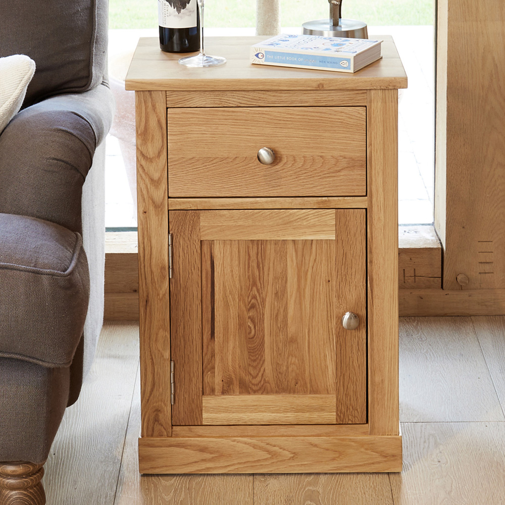 Baumhaus Mobel Single Door Single Drawer Oak Lamp Table