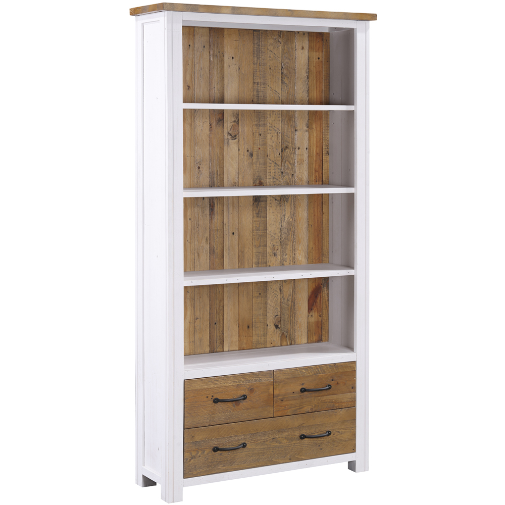 Make a statement with the Baumhaus Splash of White bookcase. This exceptional piece offers generous storage, perfect for books, cherished ornaments, and family photos. Four shelves and three drawers – one large and two smaller ones at the base – provide ample space. Expertly crafted from reclaimed weathered wood, its clean lines and stylish white finish create a sophisticated yet relaxed atmosphere. The contrasting colour palette of the reclaimed wood adds unique character to each piece. This fully assembled bookcase comes with a five-year manufacturer’s guarantee. Dimensions: H180cm W90cm D30cm. Shelf dimensions: H33cm W88cm D27cm. Large drawer dimensions: H18cm W88cm D25cm. Small drawer dimensions: H18cm W42cm D25cm. Crafted from environmentally friendly reclaimed wood.