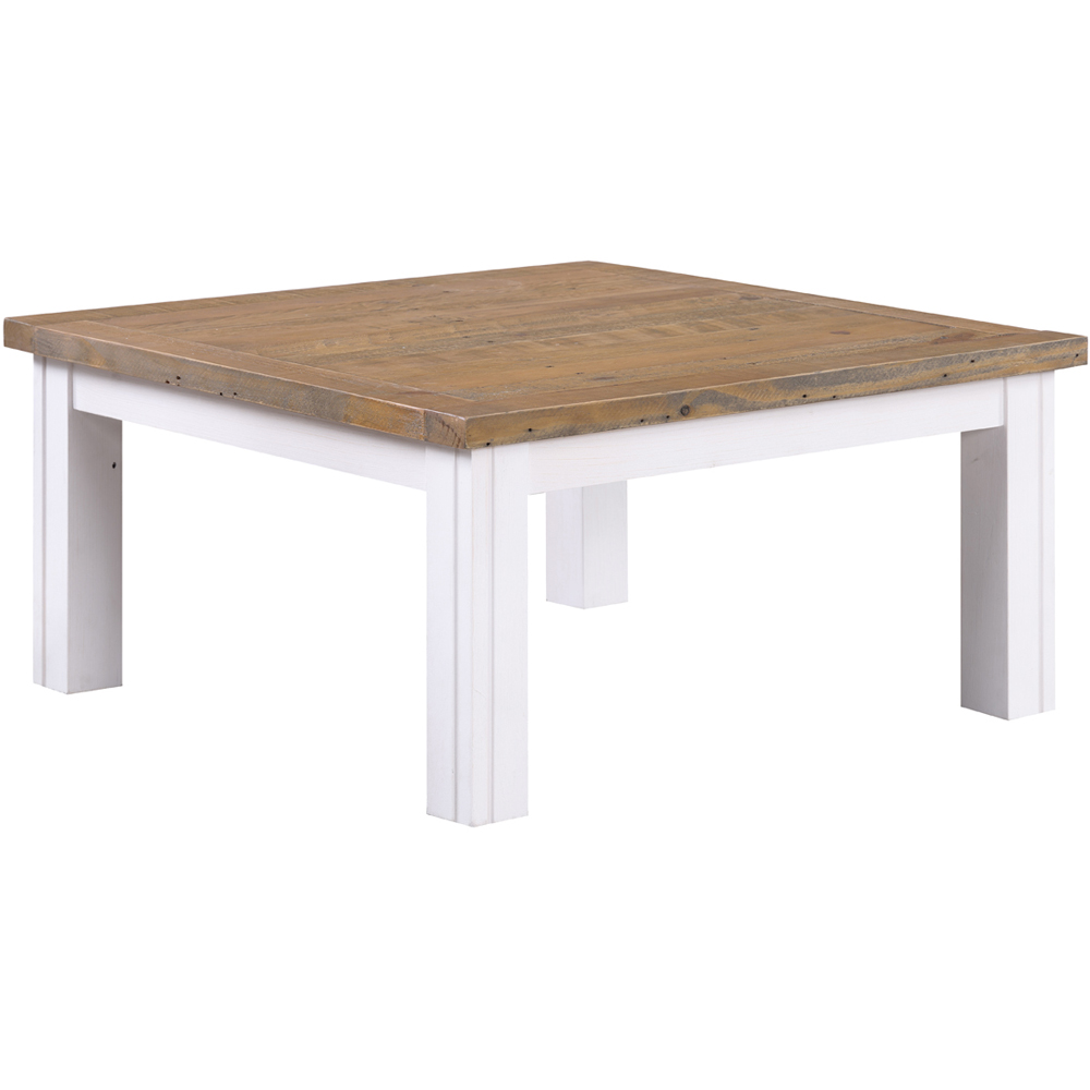 Elevate your living space with the Baumhaus Splash of White Low Square Coffee Table. This handcrafted piece showcases the rustic charm of reclaimed weathered wood, each table a unique expression of natural grain and knotting. A meticulous hand-sprayed white finish provides a striking contrast, expertly highlighting the wood's character. Protected by a durable clear lacquer, the table's beauty is preserved, its natural imperfections celebrated. Steel accent handles add a touch of refined elegance. Dimensions: H35cm W70cm D70cm. Delivered fully assembled with a five-year manufacturer's guarantee.