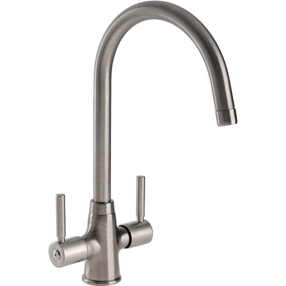 Beck Brushed Nickel Dual Lever Mono Kitchen Tap