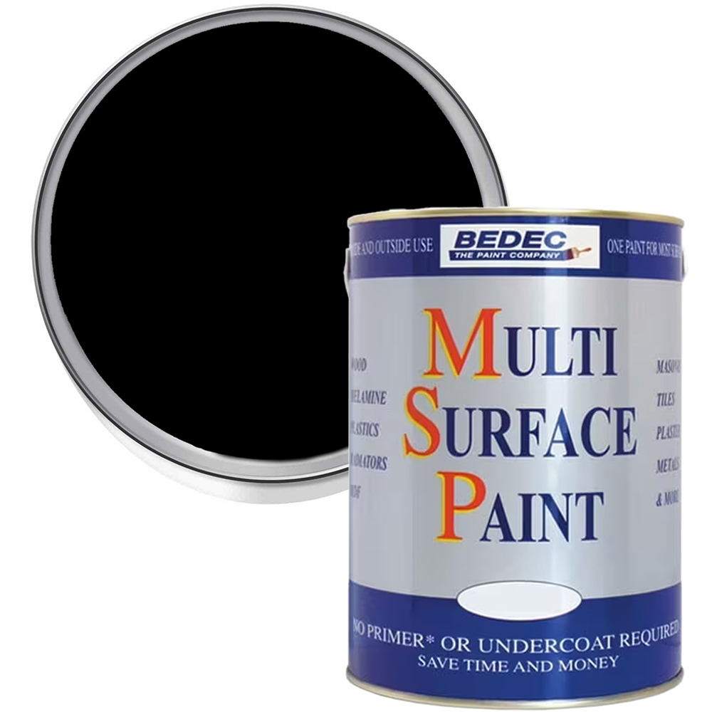 Transform surfaces with this versatile water-based Bedec Anthracite Gloss Multi Surface Paint. This self-priming, self-undercoating paint simplifies any project, delivering a flawless satin finish to a wide array of surfaces, both indoors and out. Its non-yellowing formula ensures lasting beauty on wood, melamine, plastics, MDF, Mansory, tiles, plaster, metals, and more. Available in black, this 5L tin provides ample paint for even the most ambitious projects.