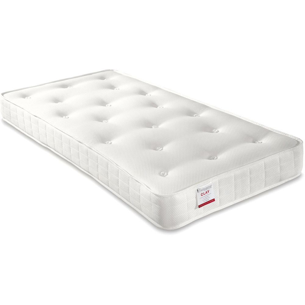 Elevate your bedroom with the Enzo single bed frame, a stylish and practical addition to any space. This cleverly designed frame boasts three generously sized drawers seamlessly integrated for discreet storage of bedding, clothes, or other essentials. The elegant headboard features two handy built-in bookshelves, perfect for bedtime reading or decorative items. Crafted from high-quality rubberwood with a minimalist aesthetic and sturdy slats, the Enzo offers both durability and a touch of understated sophistication. The frame includes a Clay Ortho Spring mattress for a restful night's sleep. Drawers are easily assembled to either side of the bed, and comprehensive instructions are provided. The bed is delivered to your chosen room, and self-assembly is required. Drawer internal dimensions: 14 x 53 x 33.5cm. Footboard height: 55.5cm.