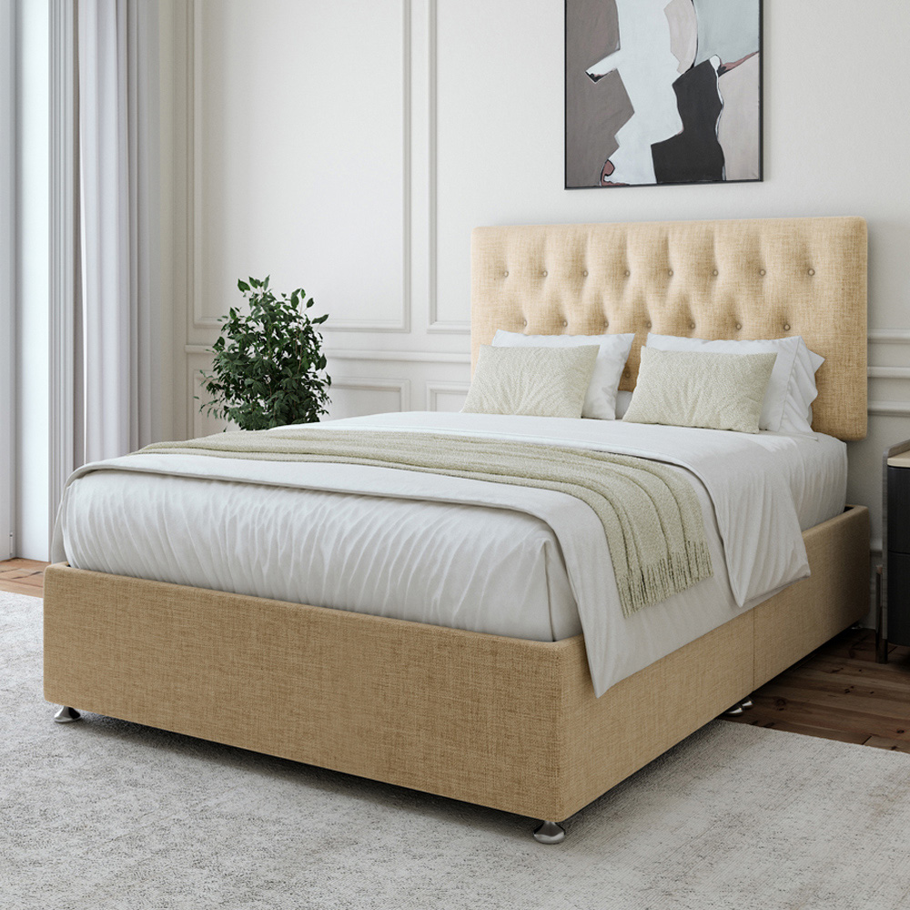 Bedmaster King Size Cream Linen Divan Base with Lona Headboard