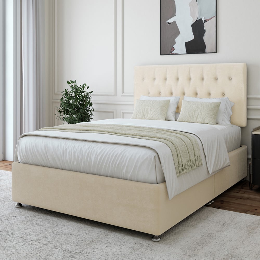 Bedmaster King Size Cream Naples Linen Divan Base with Lona Headboard