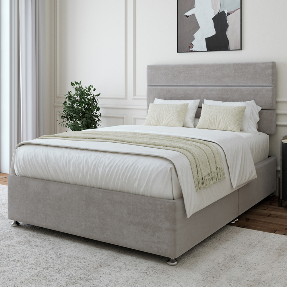 Elevate your sleep sanctuary with this robust divan base, crafted by a leading UK manufacturer. Providing steadfast support for your mattress, it boasts a polished chrome finish and protective gliders. Its versatile design allows for headboard and storage placement on either side, offering complete flexibility. Choose from a range of luxurious fabrics and colours, and select the perfect storage option: a drawer-free base, or one with 2 or 4 drawers. A matching headboard is also available.