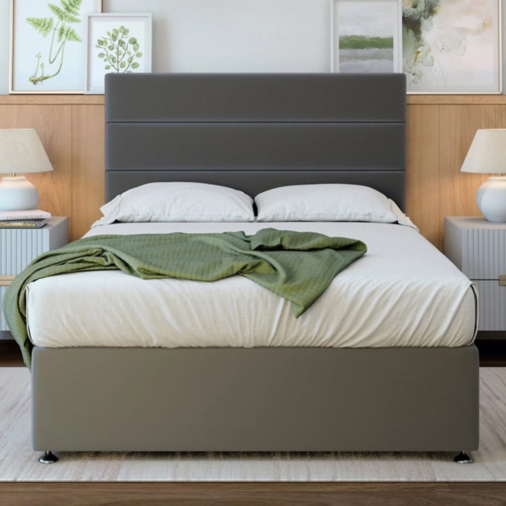 Enhance your bedroom with this robust divan base, crafted by a leading UK manufacturer. Its solid platform top provides unwavering support and a firm foundation for your mattress. Finished with stylish chrome fittings and smooth-gliding feet, this versatile divan allows for adaptable headboard and storage placement on either side.