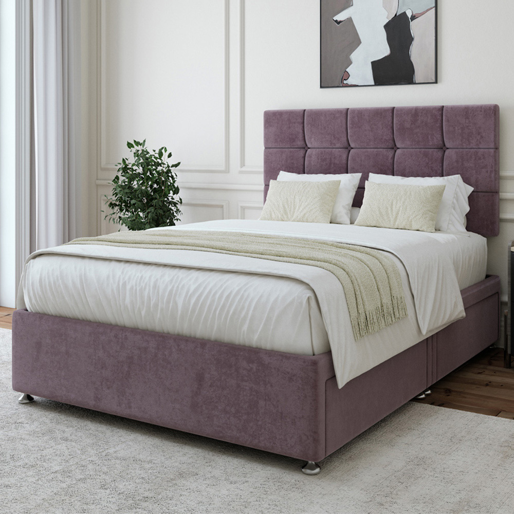 Bedmaster King Size Mauve Naples Velvet 4 Drawer Divan Base with Pearl Headboard