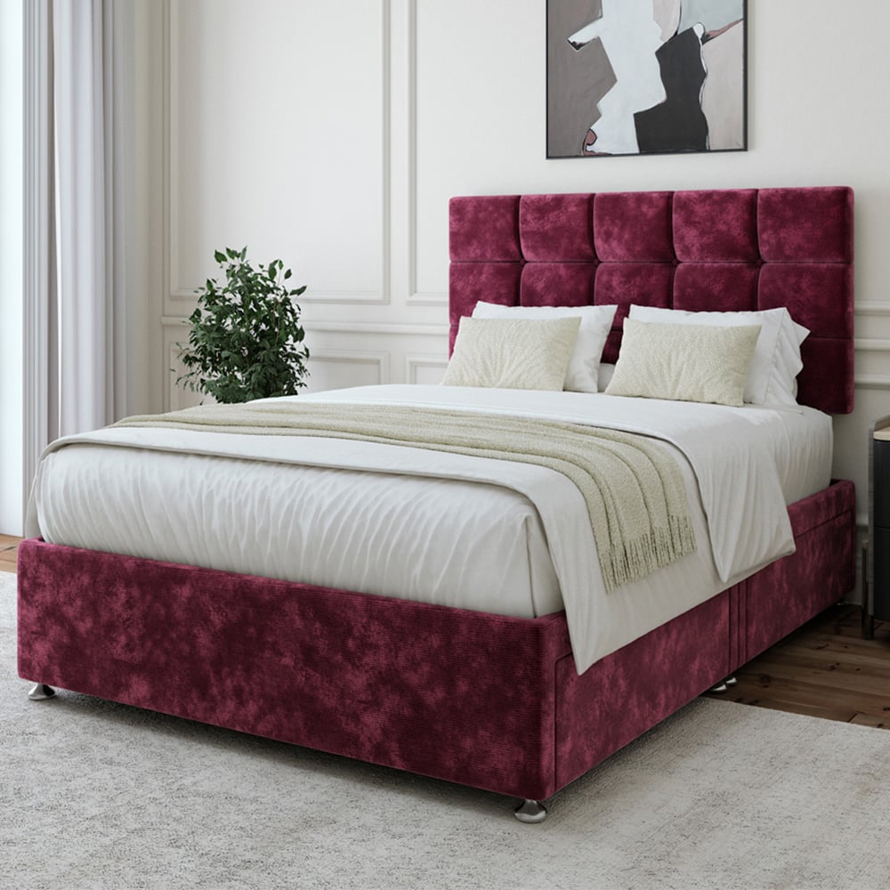 A solid platform top base and headboard from one of the UK's leading manufacturers. Providing support and a firm foundation for your mattress. Finished with chrome fittings and gliders. This divan is universal meaning the headboard and can be placed on any side. It can be purchased with 0, 2 or 4 drawers. Available in an array of fabrics and colours.