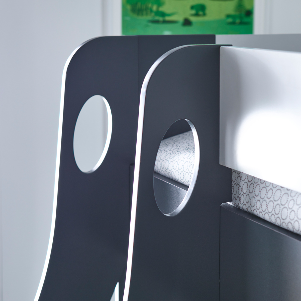 Transform any bedroom into a stylish and practical haven with the Oliver Grey and White Triple Sleeper Bunk Bed. This innovative bunk bed design features a single top bunk and a small double lower bunk, providing ample sleeping space with a modern aesthetic. Each bunk includes convenient shelves and dividers, perfect for storing bedtime essentials. Safety is paramount, with a robust ladder featuring cut-out handles that can be fitted on either side to suit your space. The low-profile lower bunk enhances both safety and the room's spacious feel. An optional pull-out drawer offers additional storage, making this triple sleeper both functional and fashionable. Complete with two Bedmaster Noah Memory Foam Spring mattresses for ultimate comfort.