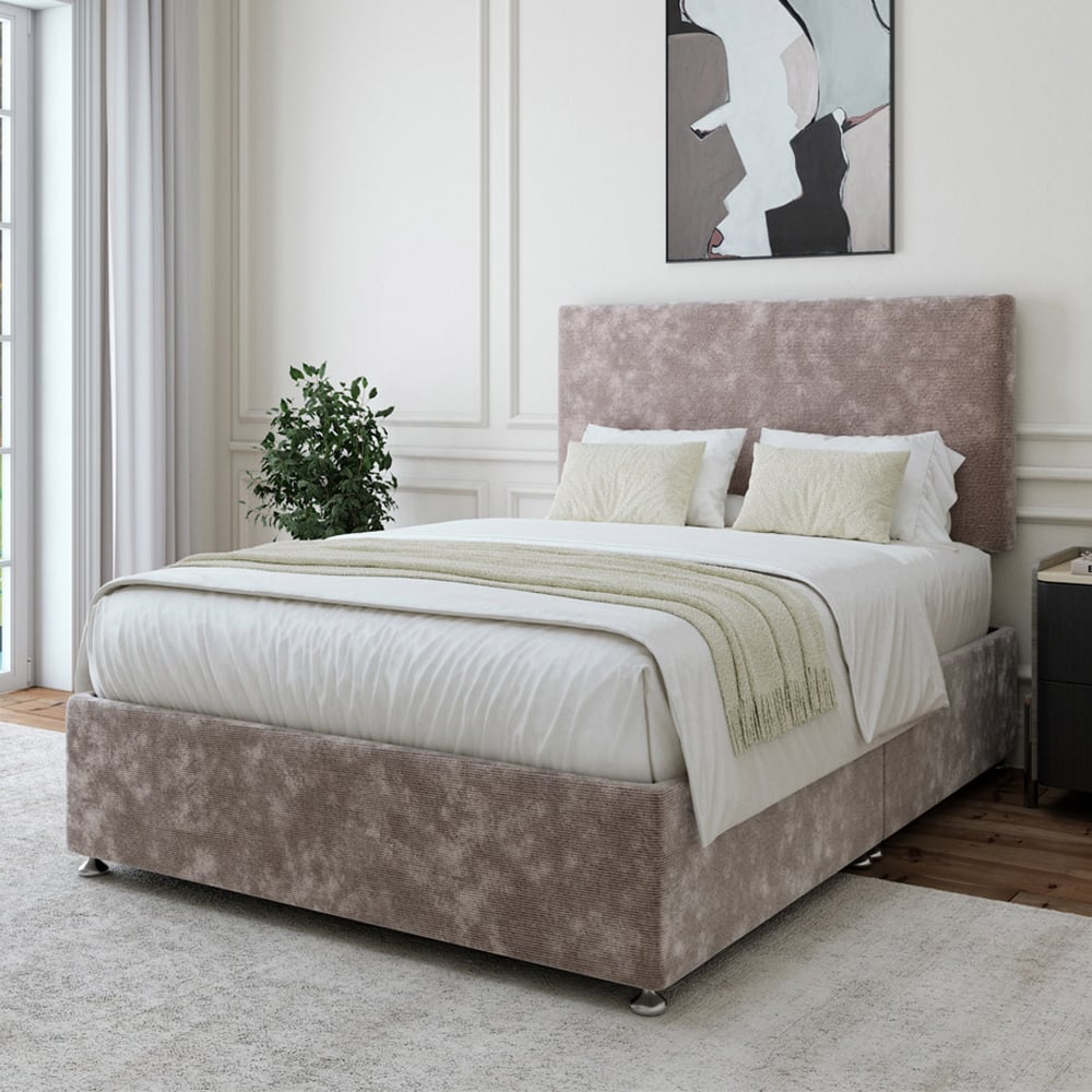 A solid platform top base and headboard from one of the UK's leading manufacturers. Providing support and a firm foundation for your mattress. Finished with chrome fittings and gliders. This divan is universal meaning the headboard and storage can be placed on any side.