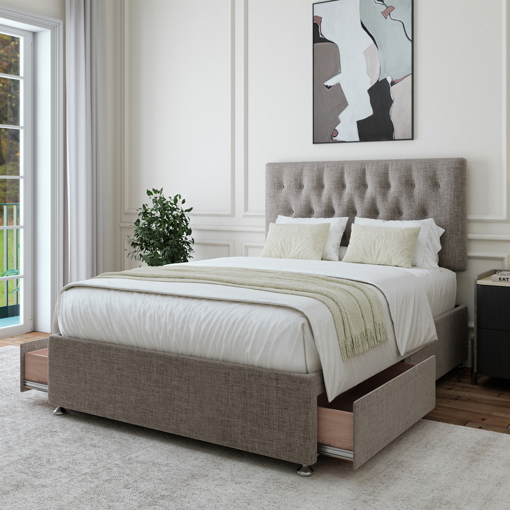 Bedmaster Single Slate Linen 2 Drawer Divan Base with Lona Headboard