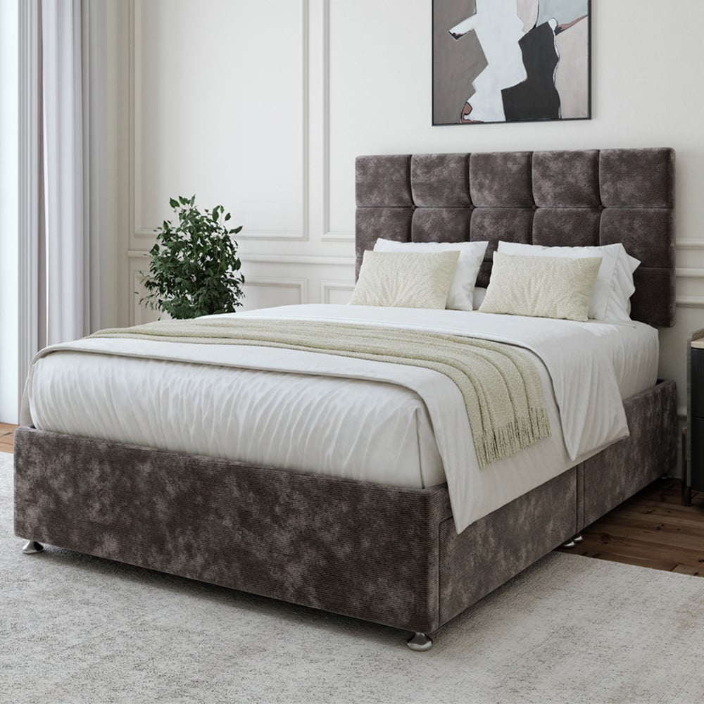 Bedmaster Super King Charcoal Chenille 2 Drawer Divan Base with Pearl Headboard