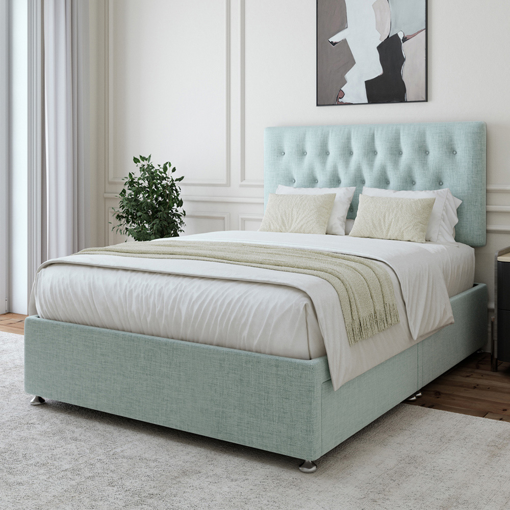Bedmaster Super King Duck Egg Linen 2 Drawer Divan Base with Lona Headboard