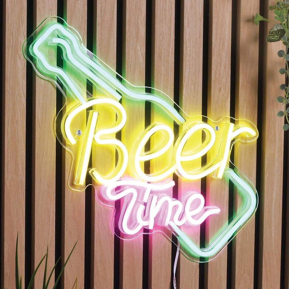 This vibrant neon sign, featuring a green bottle graphic and yellow and pink lettering, is a guaranteed crowd-pleaser this summer. Its eye-catching design makes a bold lighting statement, perfect for kitchens, bars, or gardens, and sure to liven up any party.