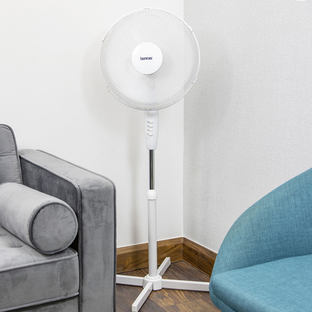 Enjoy a refreshing breeze wherever you need it with this Benross 16-inch White Pedestal Fan. Standing at an adjustable height of up to 123cm, this fan is ideal for circulating cool air across a fairly large area. Tailor the airflow to your preference with three speed settings: choose from a gentle low speed, a moderate medium speed, or a powerful high speed for those sweltering days.