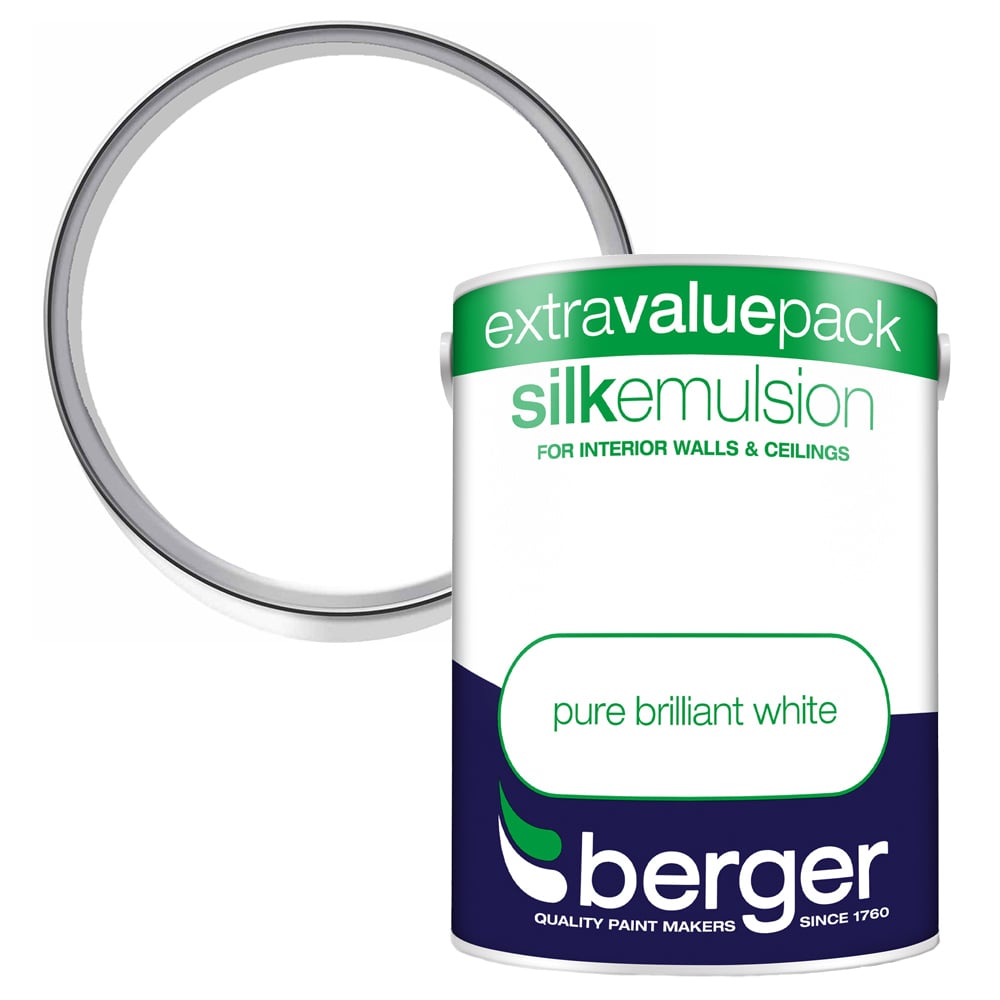 Transform your home with Berger Silk Emulsion Pure Brilliant White, a luxurious, high-sheen paint delivering a durable and long-lasting finish to interior walls and ceilings. Its creamy texture and brilliant white hue create a bright, opaque finish, perfect for adding light and space to any room. This water-based emulsion is exceptionally versatile and wipeable, ideal for busy family homes where easy stain, scuff, and spill cleaning is essential. Bring a touch of elegance to your living room, dining room, bedroom – or any space throughout your home.
