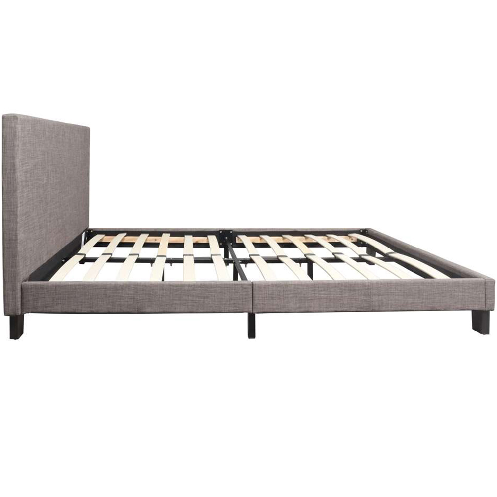 Indulge in restful nights with the sophisticated Berlin king-size bed. Its modern design and luxurious grey polyester upholstery instantly elevate your bedroom',s style. The sprung slatted base offers natural bounce and adapts to pressure points for superior comfort. This stylish bed frame features dark feet for a complementary finish. Please note: This bed is designed for UK standard-size mattresses only, with a maximum recommended mattress height of 250mm. Maximum weight capacity is 200kg.