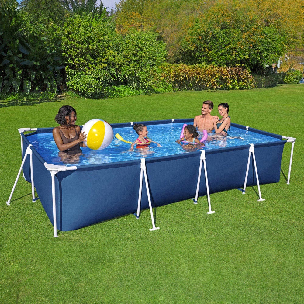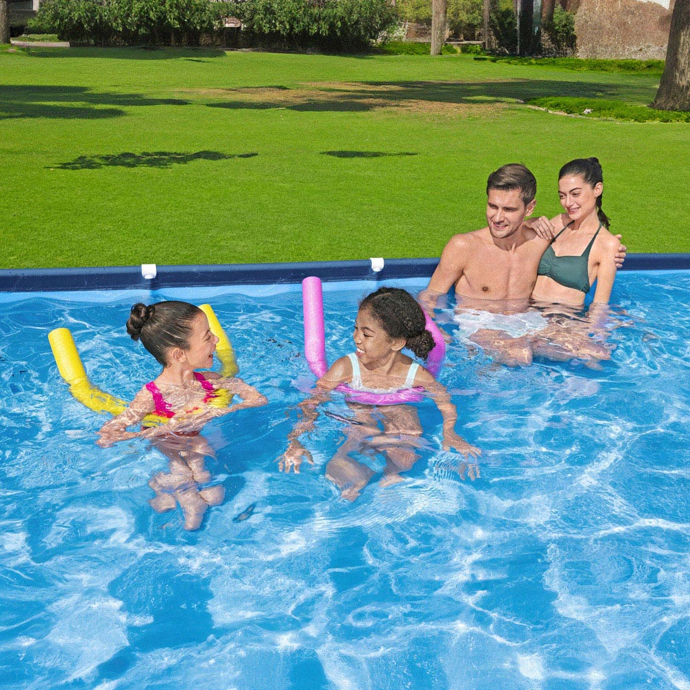 Create your own summer oasis with the Bestway Steel Pro Paddling Pool. This 13.1ft x 6.11ft x 32-inch pool offers exceptional durability and value. Its corrosion-resistant steel frame boasts the innovative FrameLink System for secure connections, enhanced by protective connectors to prevent rust. The ultra-tough, three-layer DuraPlus liner—significantly more tear, stretch, and puncture-resistant than standard PVC—ensures lasting enjoyment. Included is a 1,249L (330 gal.) filter pump for crystal-clear water. Tool-free setup and takedown, plus a convenient built-in flow control valve for easy draining, make this pool perfect for seasonal use. Water capacity: 5,700L.